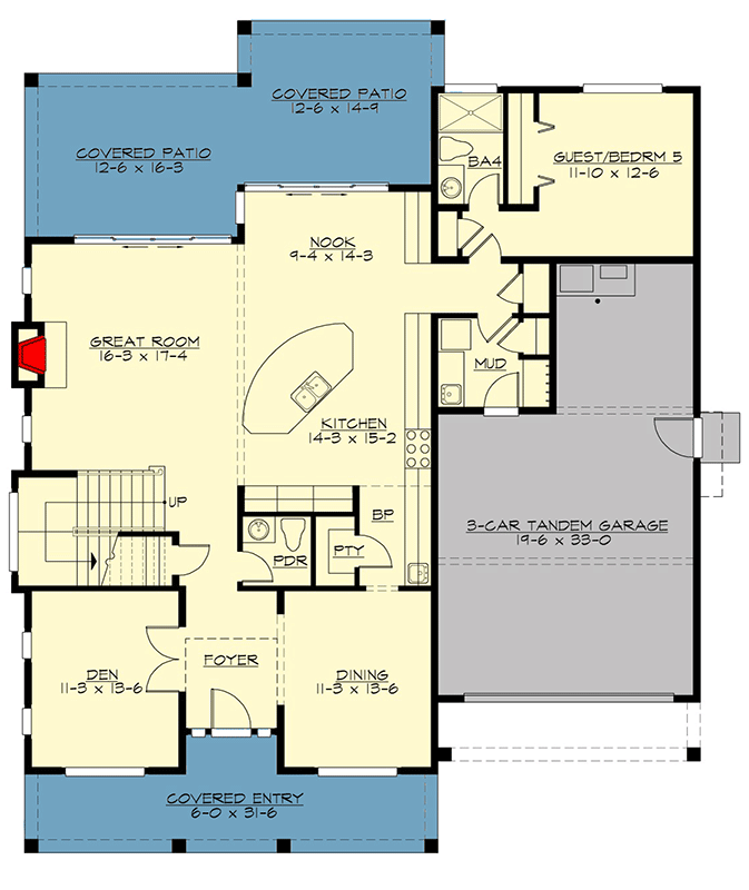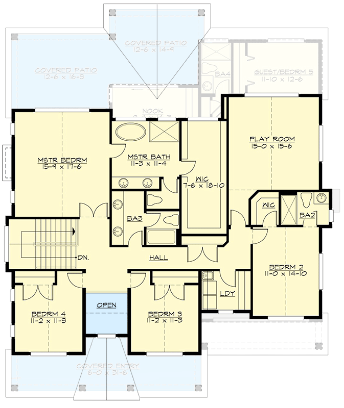 Spanning 3,571 heated square feet, this two-story Farmhouse home puts the main living areas within easy reach of the kitchen and outdoor spaces. The plan includes 5 bedrooms and 4 full baths and 1 half bath, plus a 2-car attached garage with front entry. The footprint measures roughly 52' 6" wide by 63' 6" deep, with 10' ceilings on the main level.