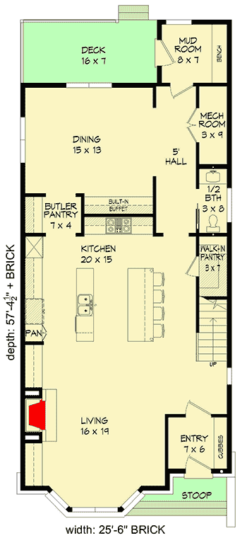 Spanning 3,321 heated square feet, this three-story Transitional home puts the main living areas within easy reach of the kitchen and outdoor spaces. The plan includes 3 bedrooms and 3 full baths and 1 half bath. The footprint measures roughly 25' 6" wide by 57' 5" deep, with 9' ceilings on the main level.