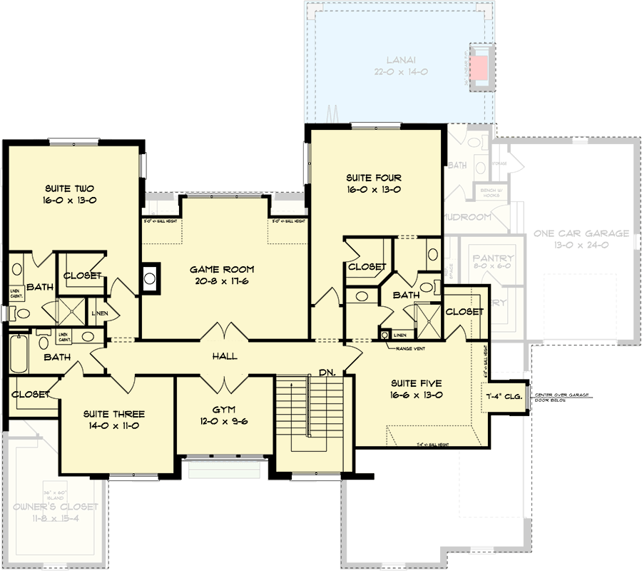 At 4,350 heated square feet, this two-story Transitional plan balances open shared rooms with quiet, private zones for rest and work. The plan includes 5 bedrooms and 4 full baths and 1 half bath, plus a 3-car attached garage. The footprint measures roughly 79' 2" wide by 70' 8" deep, with 10' ceilings on the main level.