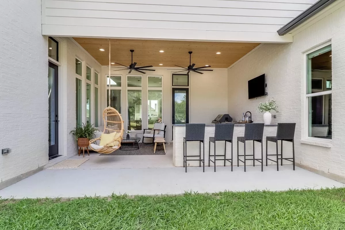 Transitional European 4-Bedroom House Design Under 2800 Square Feet Featuring a Detailed Outdoor Kitchen