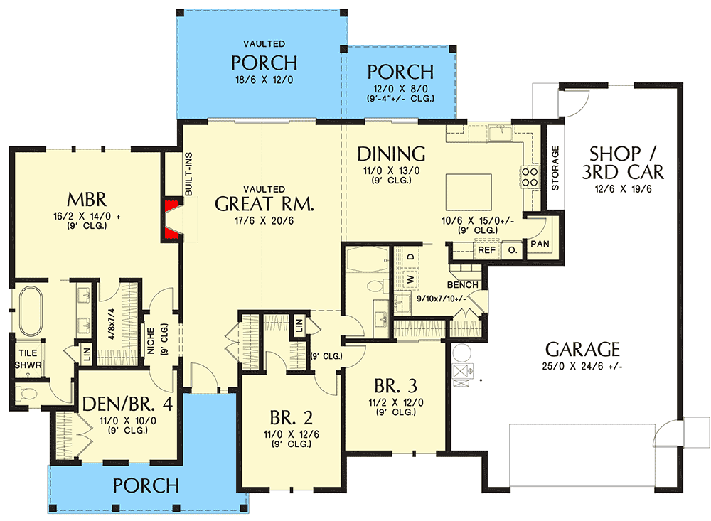The entry leads you directly into the great room with vaulted ceiling. The back wall slides open giving you indoor/outdoor living with the porch joining the inside space. Sliding doors in the dining area take you to a smaller covered porch.